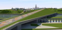 The length of the bridge is 2 400 meters, the minimum width is 54 m, the longitudinal slope is 3.7 percents, the height above the water area of ββthe river for the passage of ships is 19 meters.