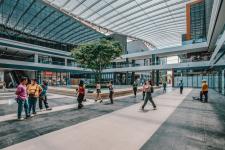 Open Space and Parkland design is a defining concept for Parqal to unify and connect the development, including functions like an Amphitheatre, Courtyard, and Greenway. The integrated open space provides a range of leisure, dining, retail, and creative working experiences for visitors with a contemporary and distinctive landscape design which enhances the overall place-making approach of the development. Elevated walkways create a more collaborative and connective space for businesses that occupy the higher floors. The central promenade that runs through the heart of the development is flanked by shops making up the 650 m retail street. Four main plazas of varying civic uses and sizes are placed within 5-minute walks from one another to shorten the walks and encourage exploration of the space.
