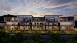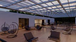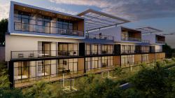 The project is located in Kigali, the capital of Rwanda. The project, located in the Kiyovu district, was designed on a 3000 m2 plot. The client, who has a plot of land in the Kiyovu area where rental income is high, wanted the most aesthetic and least costly project to be designed using the entire plot of land. A total of 29 flats were designed on 3 floors. Instead of the classic closed apartment corridor, the structure was considered as a part of the outdoor space with an open corridor. The architecture of the structure, consisting of Basement Ground Floor 2 floors, is formed by the union of frames of different sizes. The flats on the top floor create a rhythm in the structure by creating a cantilever with 3 masses separated from each other. The spaces between the flats on this floor are designed as a semi-open living area by closing them with a canopy. Canopies are architecturally emphasized by being located higher on the 2nd floor where they are located. They provide comfortable outdoor use on rainy days. The 20 x 6 meter long pool serves the entire apartment building. The 300 square meter gym on the first floor is also designed for the use of all tenants in the apartment building. The ground floor apartments have their own gardens. The first and second floor apartments each have balconies for outdoor use. All apartments are self contained and the living room and kitchen are designed together with the use of an open kitchen. Vertical circulation in the building is provided by 2 staircases, no elevator is designed. The stairs are located in the atriums.