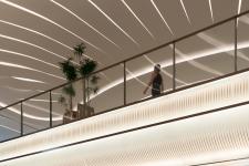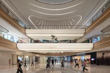 The South Atrium draws inspiration from Chinese metal tea boxes, framing sections of the space to curate a selection of goods and provide a unique semi-open setting for F&B tenants. The East Atrium features a series of themed ceiling patterns to create diverse visual experiences for each floor.