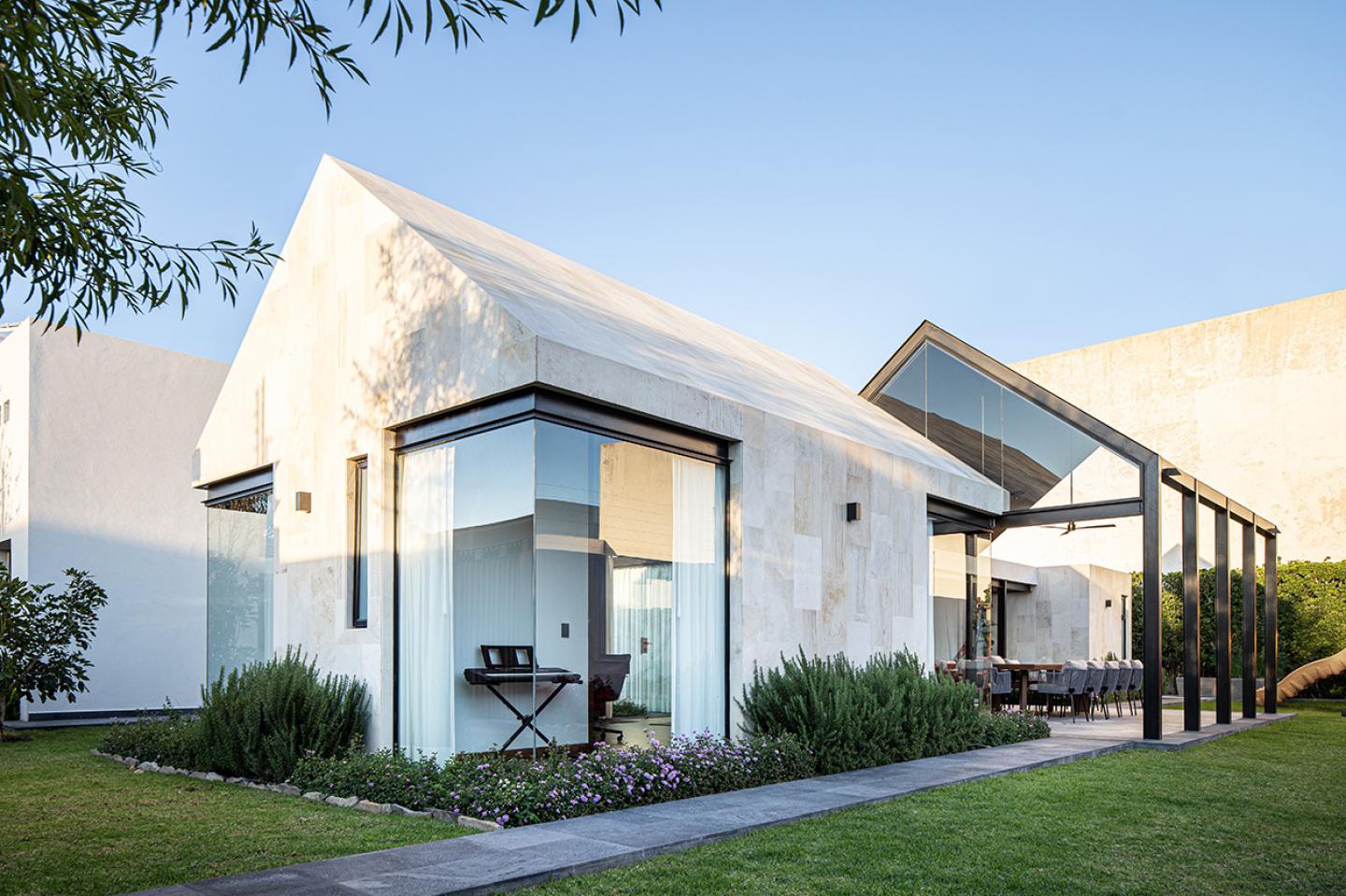 The requirements expressed by renowned guitarist Eduardo Díaz, his wife and daughters are translated into the design of this music studio made up of architectural volumes that merge through slender steel elements, stone masses and wooden details. The layout of the garden complements the palette of materials, offering multifaceted scenarios surrounded by natural environments that enrich both family activities and musical creation.