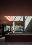 The interior design of the restaurant maintains a consistent sense of breathing with the architecture. Besides the soul-like second-floor terrace, the designer has opened a rectangular skylight above the U-shaped bar, letting natural light pour down and permeate the space. This endows the central bar with both festive vitality and natural rhythm. Interspersed with flowing water, landscapes, and plants, the scattered seating area thus eliminates any dullness.