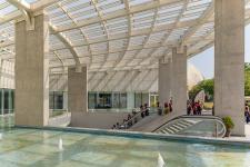 The circular, segmented, spiral organization of galleries allows seamless movement through spaces of increasing size & continuity, allowing visitors to engage in a choreographed narrative, linked to the building's organic form. The exhibits unfold in synchrony with the circular movement, creating a captivating, living canvas, each section evoking environmental associations & a profound connection to water & life. A steel and glass canopy, resembling a cantilevered petal, amplifies the entrance's appeal, while the 27.5m diameter central atrium, crowned with a steel deck slab, provides a multipurpose space from where the galleries emanate; its form rises at the centre of the spiral, reaching upward for light through clerestory windows.