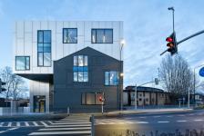 However, it must be remembered that the past, especially in architecture, is never irrelevant. Therefore, in designing the new building, the memory of the previous one was preserved - although not explicitly. An attentive passer-by will notice traces of the original building - the dark outline of the former building block with its sloping roof and, on closer inspection, synthetic relief of the historic openings, cornices and bands.