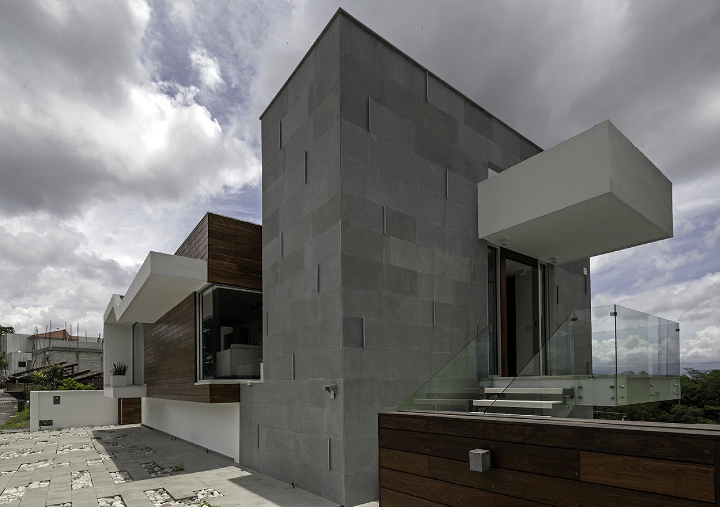 Finally, a void-volume relationship that allows it to be configured into three zones at the transversal level of the project: an esplanade in front of the property to integrate the access area at street level; the body with the living spaces that is planted above a street level and finally, the free area that integrates the pool and a garden that descends to the lowest part of the property.