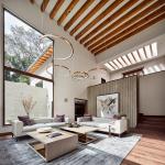 Going down the stairs you reach the social and service areas. The triple-height room is framed by the view of the greenery that surrounds it and also has a contemplative terrace. There is also a large family room with a library, dining room, kitchen, laundry and utility room.