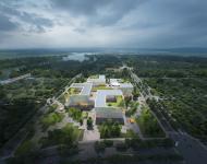 Wuxi International Healthcare Campus breaks the traditional practice of general hospitals and its confusion between the navigation of its users. By forming a cross windmill scheme, this project incorporates four parks and nine centers which adapts its design to the needs of every type of user.