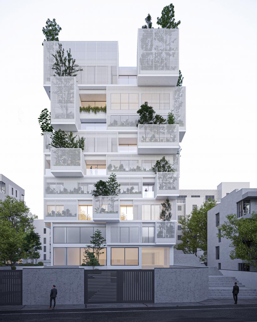 The main concept of this project is the creation of semi-transparent spaces within the building’s facade, positioned between the exterior and interior. These spaces facilitate the formation of multiple inner gardens at various levels. Each garden, with its distinct dimensions, not only creates small green spaces that can be managed throughout the project but also provides views from the inside out, making the building mass permeable and light. The extension of these gardens into the interior spaces can meet human needs.