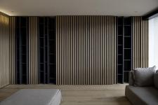 When the lattice is closed it divides the social area, composed of living room, dining room, dining room and study. When it opens, it unites all the spaces, dressing the dining room wall and thus achieving a comprehensive environment. This dynamic element, in addition to being very functional, harmonizes with the selected finishes to create a very warm atmosphere in sync with the era. The neutral and clean design allows inhabitants to take ownership of the space by incorporating furniture and accessories to their liking, without losing the harmony of the space.