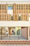 The community spaces on the ground floor have solved the circulations with a concrete floor and the entirety of the space by pavements that allow the natural permeability of the ground, allowing natural flow to the subsoil. Local trees will protect the circulations from the summer sun.
