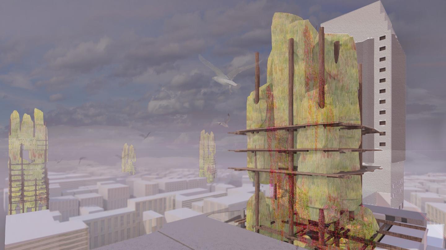 I started from the ground of the parking lot, using the four cores of the parking structure as reference points. These cores were integrated into my design as circulation elements. The demolition continued by breaking the seals from the ground upward. The new structural supports were placed in harmony with the existing parking structure’s broken columns and beams, integrating into the locking system. The goal here was to minimize construction, prioritize preservation, and achieve an integrated approach.