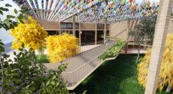 Outdoor Area: A sustainable shading structure made from textile waste, which will be renewed annually through community events.