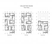 The typology Collective House consists of 15 apartments for singles or small families. It has communal spaces blended with private units, such as an inner courtyard and a shared balcony.