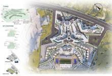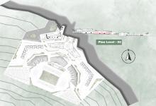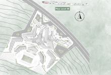 The architectural design of the resort reflects its commitment to holistic health, inspired by a three-pronged focus on physical, mental, and social care. The inspiration for the three-pointed star shape based on the mountainous terrain and the three points of holistic health principles. firstly, This layout respects the natural contours of the land and prioritizes the environment by intentionally spacing the buildings apart to preserve the natural terrain rather than disrupting it. By creating pathways that encourage walkability, the design supports physical health. Interconnected walkways and stairs promote physical activity, aligning with the resort's emphasis on physical well-being. Additionally, the varying levels of the buildings offer unobstructed, picturesque views of the surrounding landscape, enhancing mental health by immersing guests in nature. The design fosters social interaction through thoughtfully designed common areas that encourage connection among guests. Furthermore, it allows natural airflow and daylight between the buildings, improving the internal environment. Golf carts are available for guests with mobility challenges, ensuring accessibility and inclusivity while supporting social interaction.