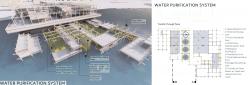 Under the platform (on the ground floor) there is a "Purification System" that allows the water in the polluted wetland to be treated and released back into the wetland. This purification system includes purification pools that go through various stages and this system uses the reverse osmosis method.