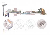 Breaking away from traditional market layouts, the design challenges the conventional idea of market kiosks on a ramp. The hub features a continuous, seamless vertical transition with a 1:20 sloped ramp that elevates the market off the ground. This innovative approach allows visitors to effortlessly ascend into air-conditioned retail spaces and restaurants, creating a fluid, accessible experience. The ramp not only serves as a functional pathway but also as an architectural gesture that lifts the market into the air, symbolically elevating the everyday experience of shopping and dining.
