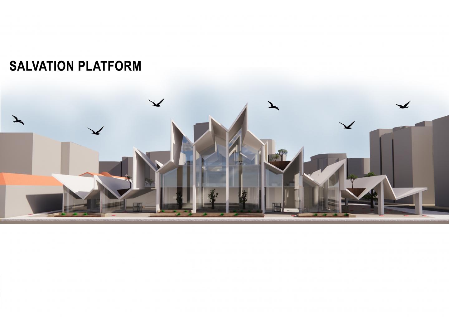 A scenario has been created in the context of the traces of the area's past, today's problems and future requirements based on this analysis and concept. The project program is a Salvation Ritual where certain groups come together and come to the Salvation Platform based on the promise of ''Peace for all species'' by 'St. Francis', the priest of the Santa Maria church next to the project area, and the city crimes committed until now will be remembered every year and purified so that they will not be repeated. As a main function, it is a platform where craftsmen in the project area and white collars in the rising towers of today will meet and do education, production and promotion. Thus, this building is a station where skyscrapers, which are crimes against the city that cause craftsmen to disappear as a profession and structure, and white collars in skyscrapers will create collective consciousness with tradesmen.