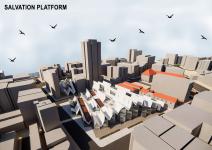 Salvation Platform reflects the past-present-future issue in its form with the following strategy. Salvation Platform exists as a low-rise building mostly buried underground and integrated with the silhouette in an area where skyscrapers crush the historical texture, unlike skyscrapers.