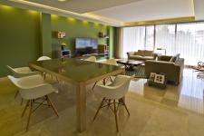 La familia y los amigos son el centro de las áreas públicas y privadas, en las que se puede apreciar la intención de disfrutar la sala, el comedor, el bar, el área de juegos y el estudio. La armonía que se aprecia entre el mobiliario, materiales y paletas de color le da la personalidad a cada espacio y conforman un lenguaje que se va enriqueciendo en el recorrido.