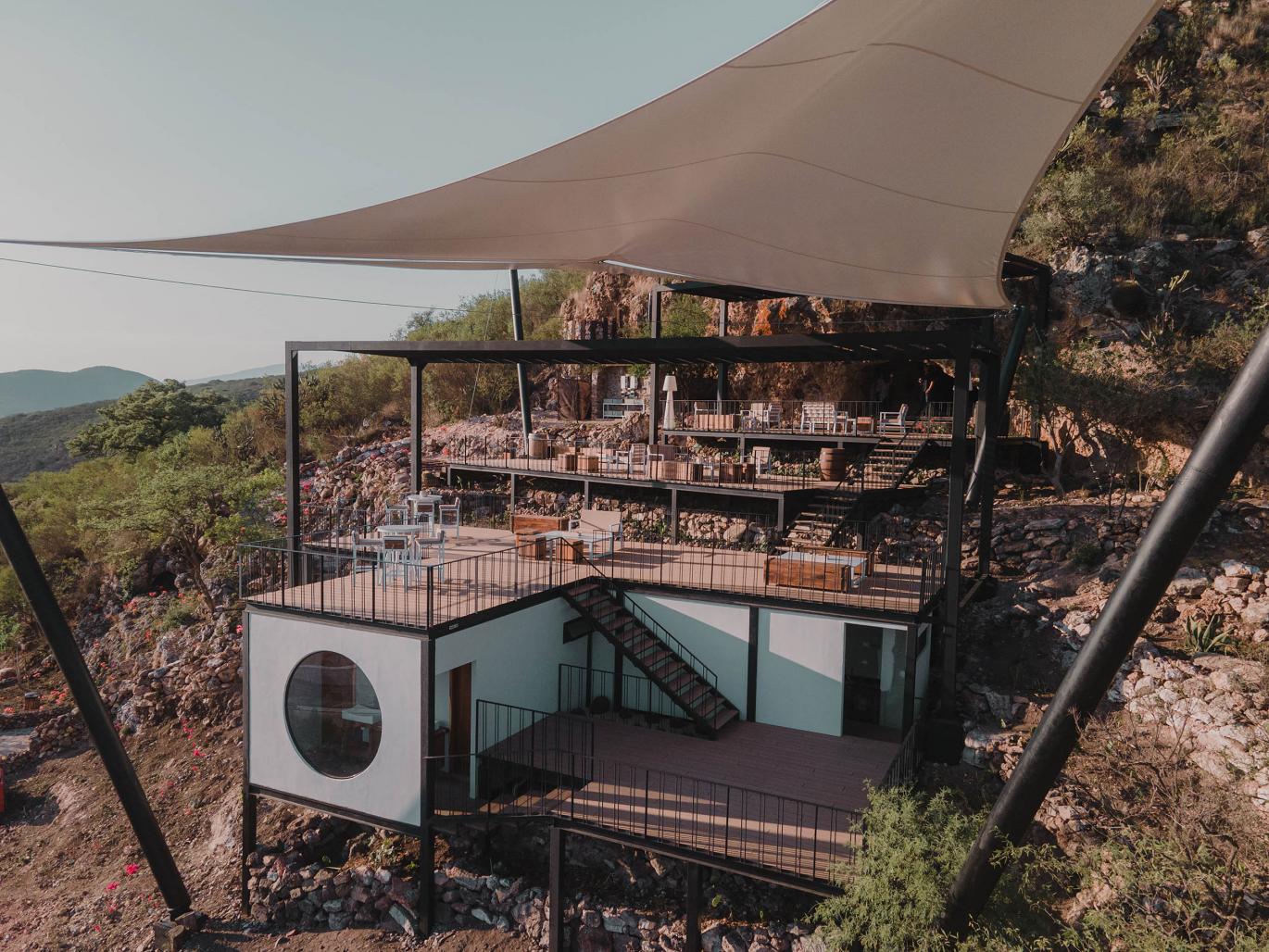 Once we have overcome the initial hurdles, and with plans in our hands, we set about developing the conceptual side of the space. On this we suggested a place for wine tasting in the interior of the cave and some platforms to have events on the mountainside as well as the interaction between the two concepts.