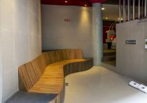 Another important challenge to overcome was the distribution of the rooms, as there was no standard, so it was decided that it was best to do an item that would standardize and drive to all rooms. a module composed of the head , lamps, tables, benches and tubular ( our famous fajódromos ) that shaped the thread that lies in all rooms regardless of their configuration and measures was generated .