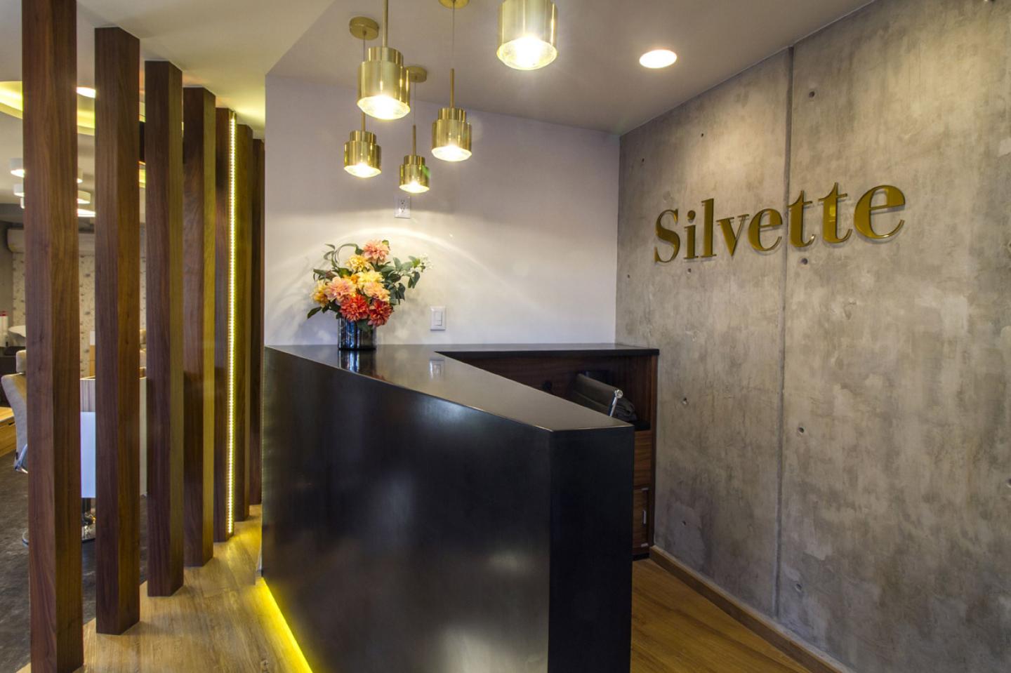 Se diseñó un plafón, para resolver la falta de muros del local, en el que se definió la iluminación que permite crear distintos escenarios para la operación del salón y el confort de los clientes. El mobiliario tiene una línea sencilla y contemporánea en colores neutros acentuando la armonía del espacio. El diseño del interiorista Aurelio Vázquez cuidó que Silvette tuviera una vista muy atractiva desde el exterior aprovechando al máximo su fachada completamente acristalada.