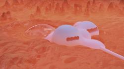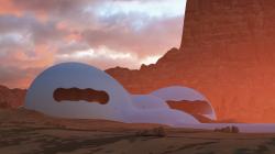 The architectural form was developed through simulations of Martian wind and gravity, leading to a self-load-bearing structure inspired by the behavior of bubbles joining together. This design ensures structural integrity while being efficient to construct. The entire structure can be 3D printed using Martian regolith mixed with binding agents, utilizing local materials and reducing dependency on Earth-based resources. The regolith, at a depth of 50 cm, provides effective protection against radiation.