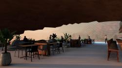 The dining area is a communal space designed to foster social interaction while offering stunning views of the Martian surface. The hotel’s restaurant serves a variety of meals, including those made from 3D-printed food as well as fresh produce grown in the hotel’s own hydroponic gardens. The dining room’s design incorporates soft, ambient lighting and a mixture of communal tables and private booths. The space is accented with greenery from the hydroponic systems, bringing a touch of Earth’s nature into the Martian environment.