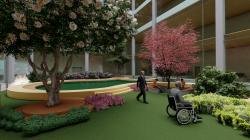 The proposed hospital in Gurugram incorporates biophilic design elements such as natural light, green spaces, water features, and organic materials. These elements are strategically integrated into the hospital's layout to create a calming and restorative environment. The design also includes therapeutic gardens and rooftop green spaces that offer patients, staff, and visitors a respite from the clinical setting, fostering a connection with nature and enhancing the healing process.