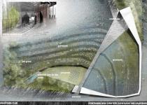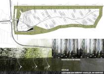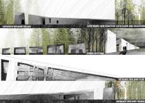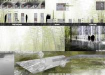 Our plan is, that the first part will be a gradation between a builded garden and a natural parklanded wood. The graveyard, as a green surface of the city, must function as a park too. As the city has enough green surfaces, the graveyard is proper to give a place for valuable and rare plant-associations. As a botanical garden, orchard, it fits for specie conservation. The patches and furniture of the graveyard are park-styled too. We had many requirements for the buildings. It must be up to date, buti t cannot be ostentatious. It must slick into the gentle slopes of the area . Enduring, sign-like masses with hard sentimental-sacral filling.