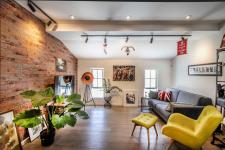 "The London design returns and recurs in the interior design in different parts of the house. For example, brick-print wallpapers were an excellent solution to convey the feeling without resorting to the high expense of real brick cladding. We also incorporated pillows in the design of the English flag, a famous London picture, works collected in London itself, a painting of Big Ben, and more."