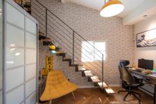 "Their meeting takes place particularly at lunch, at the kitchen island - thus, the connection between them is maintained, and at the same time, they are disconnected enough from the home atmosphere and maintain the privacy and concentration required during work. The father's work room is designed as a kind of contemporary loft in a young style, somewhat reminiscent of work spaces in the high-tech industry. In contrast, the mother's work room is colorful on one hand and soft and romantic on the other, with a more calm and relaxed feeling prevailing in it."