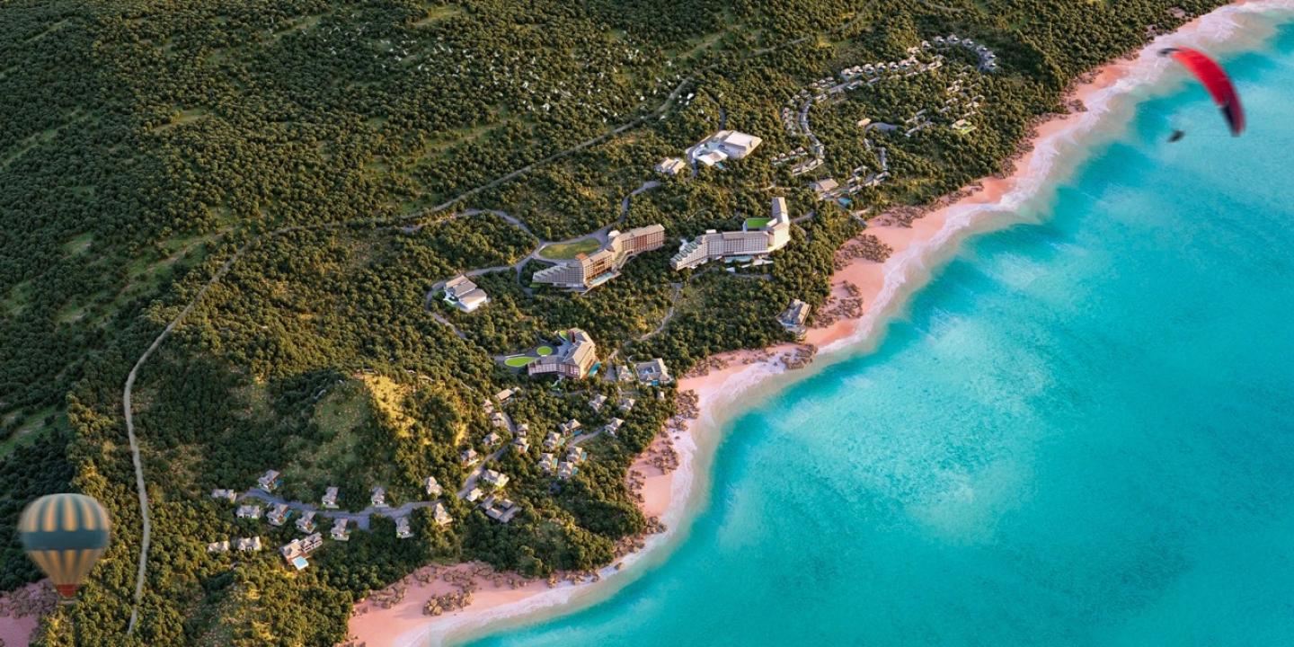 The project features 500 5-star hotel rooms, conference centers, and venues for beauty pageants and competitions in line with the business and cultural focus of Royal Group (the investor). The resort covers a meticulously preserved mountainside and a private, well-appointed beach spanning up to 87.5 hectares. Its private location, stunning landscape, unique local architecture, and distinctive cultural elements are expected to make it an attractive destination for relaxation and tourism in Southeast Asia.