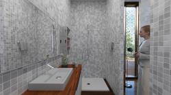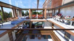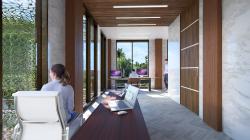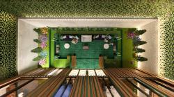 The ceiling of the third floor of this villa is designed as glass and operable, allowing residents to open or close the ceiling at any time they wish. This feature particularly creates a unique and different experience inside the villa during rainfall. The sound of rain and its beautiful scenery convey a sense of peace and closeness to nature to the residents. This design not only adds to the beauty and attractiveness of the villa but also establishes a stronger connection with the surrounding natural environment.