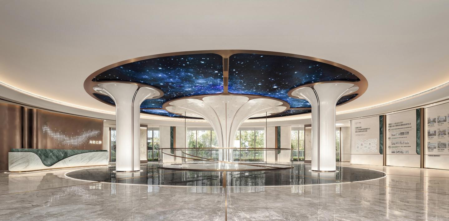 This project is an ecological aesthetics space that integrates home-coming lobby、sale and lifstyle experience space, designed for Xingtai BEGONIA MANSION residential community developed by Hebei RONG Real Estate Group. The center of the lobby on the first floor is themed around the IP of the banyan tree with a giant crown, combined with the shape of crabapple petals, and narrated around the life law of "Sprouting-Growth-Blooming-Fruit", creating a warm and caring space with vitality and texture.
