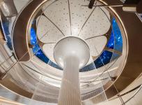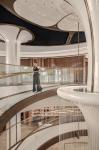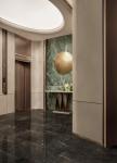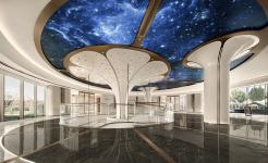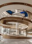 The banyan tree starts from B1 floor and grows through the specially designed shared space to the top of the lobby on the first floor. Its giant canopy blooms like petals, enveloping the entire shared space. The designers have also designed the structural columns on both sides of the shared space into the tree shape, forming a forest with the central banyan tree. A circular LED electronic screen is set at the top of the forest to provide a natural audio-visual of the morning and evening in all seasons. This creates a warm and natural atmosphere for the entire lobby space, bringing a relaxed feeling and respectful treatment to those returning home. At the center of the trunk of the banyan tree, a silk thread water curtain is set up, flowing gently. Walking slowly downwards the rotating ramp around the tree, visitors can leisurely look up at the crown of the tree, observe the crystal clear water flow up close, and stop, ponder, and listen here.