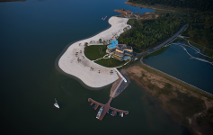 The reception hall is located in the southwest portion of the site to offer convenient accessibility, the restaurant occupies the northwest side which offers the best views of the landscape, administration is in the quieter southeast corner, and the VIP Club is placed on the top floor to maximize views of the lake.
