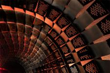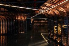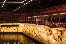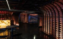 Based on this idea we studied the geometries of sound waves, trying to find patterns that would allow us to achieve an interior envelope that would identify the space with musical movement; on the one hand loose and organic, but, on the other hand, very methodical and mathematical. We immediately understood that the project had to be resolved by integrating only two elements: metal and light. The project consists of this unique, continuous piece, made up of metal ribs and scales that together create dynamic undulations, generating a vertical and horizontal envelope that covers the 640m2 of the space, and resolve the different situations of use. The development of this element required a high degree of technical complexity in order to achieve the desired image of lightness and fluidity. The effect of the light filtering through the spaces generates movement and a richness of shadows and reflections that precisely creates the desired effect. The complexity of this element coexists in the project with a great main bar that, in contrast to the dynamism of the envelope, in this case is a single, monolithic and immobile piece that functionally resolves the gastronomic proposal. Both elements dialogue and coexist through the warmth of its lighting.
