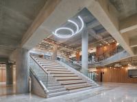 The interior of the Güngören Performance Center, designed by ÖzerÜrger Architects, features exposed columns and beams with a simple design that only uses wood paneling. The stepped seating placed in the gallery voids opened in the floors not only strengthens the connection between the levels but also offers alternative spaces for various performances. In this context, events extend beyond the walls of the performance hall, spreading throughout the entire space.