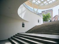 ÖzerÜrger Architects designed a performance center and parking structure that preserved the public character of the area. The building is intended to serve as an urban interior lobby and functional complement to the People's Garden. To achieve this, the elevation difference starting from the street at the entrance of the building was reconfigured, with spatial functions placed under the differently designed roofs, while the upper sections were designated for park and open space uses. The entrance to the Performance Center is highlighted by a courtyard created by a rounded opening in the roof and a circular canopy over the courtyard.
