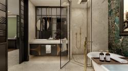 Material application: stone, wood veneer, bronze metal, art glass, handmade tiles, art paint