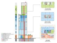 The design balances functionality and iconicity. By reducing the area of the north side and increasing the number of floors where users can enjoy the river view, the design maximises the value of interface facing the Pearl River while also gives the tower a slender and iconic shape. The ground floor is designated for the lobby of office space and corporate studio, and retail, with independent circulation for each function. The primary function of the tower is office space, featuring a balanced and cost-effective typical floor layout of 2,200 sq m. The corporate studio, located in the upper part of the tower, has a typical floor area of 1,200 sq m, benefiting from north-south ventilation and offering the best views of the river.