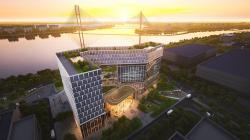 The headquarters features a striking zigzag form that not only provides all-around river views but also incorporates terrace gardens on different levels. At the heart of the headquarters lies the ‘pearl’, an iconic eco-atrium, designed to foster a vibrant environment that encourages collaboration and creativity. Well-connected to the city, the headquarters will serve as a city complex,offering various spaces that support a range of events and activities, further integrating the building into the community.