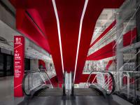 The vibrant colors of Huaxi, symbolizing youth, vitality, and dynamism, are interspersed throughout the space. Shimmering cubes evoke the inspiring spirit of sports and the vitality of Huaxi LIVE. Modern materials such as aluminum panels and back-painted glass ensure a clean and user-friendly interior, guaranteeing the building's durability as a sports venue. From external branding to internal functional guidance, the comprehensive wayfinding system enhances the building’s stylish atmosphere while providing intuitive and efficient material and color strategies.