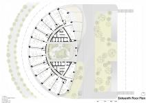 Shivalik Curv aligns with GIFT City’s vision of sustainability, incorporating several environmentally conscious interventions. The building features an energy-efficient cooling system designed to minimize operational energy consumption, along with solar panels that contribute to the site’s renewable energy generation. Rainwater harvesting systems are integrated to reduce water consumption, while the design encourages natural daylighting to decrease reliance on artificial lighting. The green terrace not only provides a space for user interaction but also enhances the building’s thermal performance, contributing to its overall energy efficiency. These sustainable strategies are integral to reducing the environmental footprint of Shivalik Curv, setting new benchmarks for sustainable architecture in urban office developments.