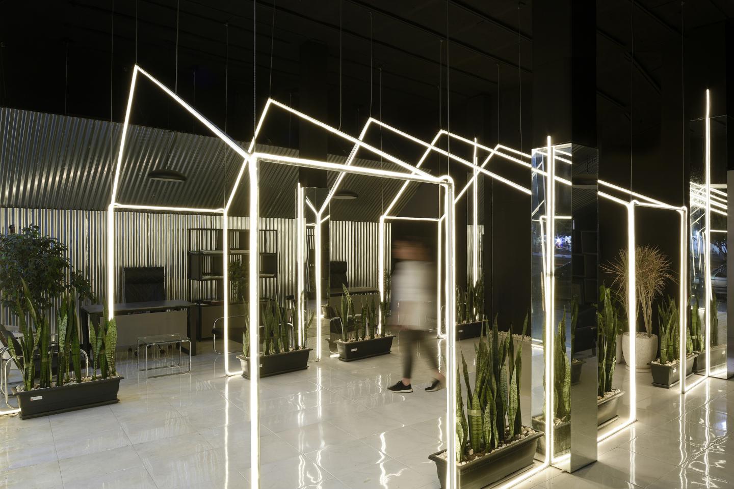 Additionally, the location of the project, situated on one of the busiest streets in Amol, presented the best showcase for the project itself. Therefore, we designed a living showcase in the form of a familiar house, creating a visual identity that evokes a sense of homeliness and comfort for the user. This form was also repeated inside the space, allowing us to achieve the desired spatial separation without using walls or enclosing the environment. This approach brought transparency and the necessary dynamism for easy access.