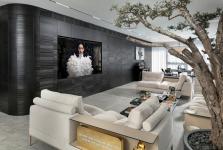 The Gindi TLV towers have long since become a Tel Aviv icon that changed the city's skyline. On the 45th floor of one of them lies the spacious apartment of a former kibbutz couple and their teenage daughter, where every detail is extraordinary: from a dramatic and powerful wall that creates a total separation between public and private spaces, through a pair of mature olive trees planted in the center of the living room, to fantastic artworks hung on the walls. Interior designer Oron Milshtein shares the work process and unconventional choices.