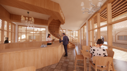 2. Integration of new elements like open spaces, shops, cafes, and other amenities into the design.