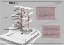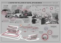 "Digital Arts and Media Center" has adopted the mission of encouraging social interaction with art through digital environments and raising awareness in this process. The recent rapid increase in technology and artificial intelligence supports that we will need such spaces in the future. Emphasizing the importance of spatial design in facilitating artistic experiences, 'A CENTER FOR THE LAYERS OF DIGITAL ARTS AND MEDIA' project masterfully adopts a nested spatial approach, using strategically folded spaces as conduits for creative exploration. Artfully folding a flat strip, the project skillfully integrates functional elements such as ramps, lecture halls and rooftop lecture halls. The folding of architectural layers is designed to encourage interaction and circulation between users and the architectural environment, so that people can experience this space more comprehensively.