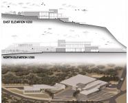 The project's ground floor works in common with terraces and is located close to the university gate and is open to social use. The cafeteria, open and closed amplifier and office units are here. On the first floor, we are greeted by a second entrance due to the slope and a common area overlooking the sea. The exhibition hall, recording studios and the first entrance of the conference hall are located on this floor. There are places where guests can wander around the exhibition area and on the terraces outside before using the conference hall. Using the main core, the sea view and social areas are observed, and there is a foyer and conference hall on the second floor. At the same time, the backstage of the conference hall is connected to the accommodation areas for the upcoming artists. The accommodation units and recording studios reserved for the artists are separated by landscaping, and attention has been paid to the circulation of private areas. The accommodation has its terraces, and parking areas, and is not accessible to guests arriving in the building.